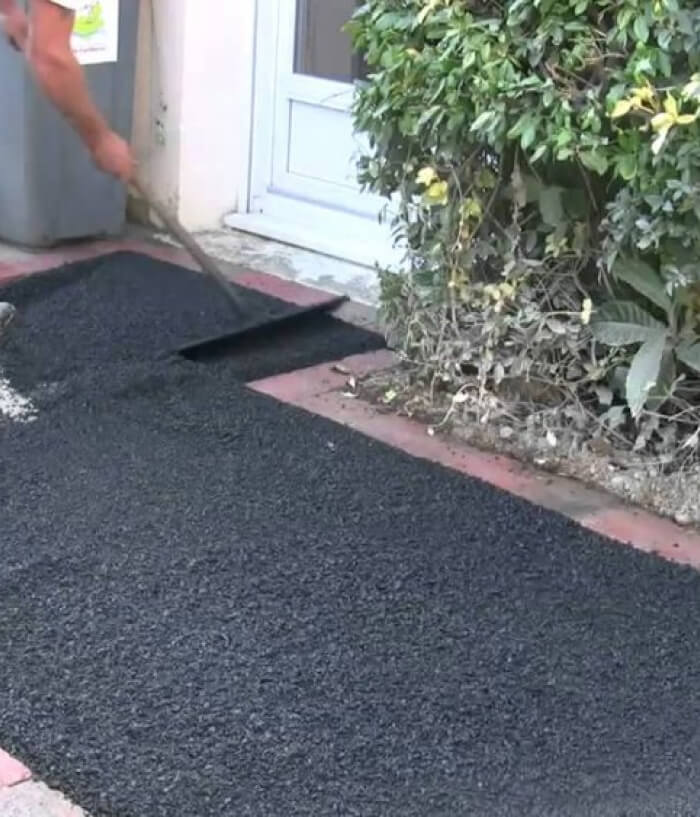- L'enrobé à froid est un produit de réparation de sol, parfait pour reboucher des trous dans le bitume.